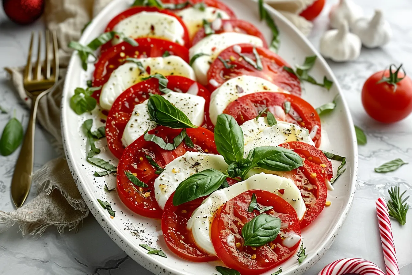 - Get Creative with the Shape: While I went for a classic candy cane, you can also create a wreath shape or even spell out “Merry Christmas” with the tomatoes and mozzarella.