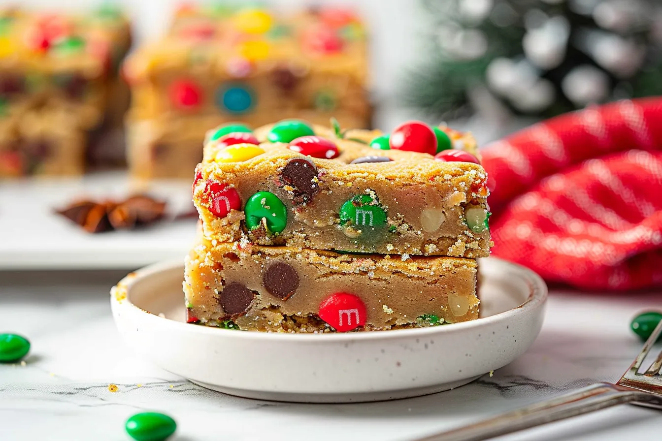 Chewy, soft, and bursting with chocolatey goodness, these Christmas M&M cookie bars are easy to make and always a hit at parties. Perfect for a festive holiday treat!