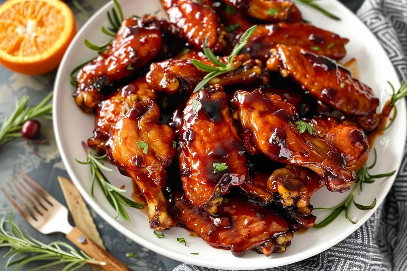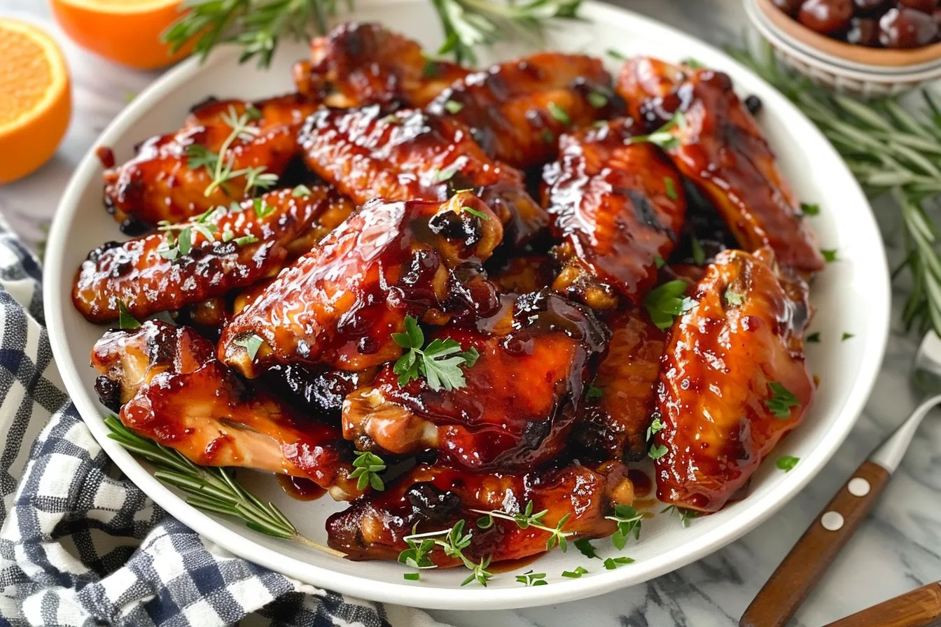 For a festive presentation, garnish the wings with fresh cranberries and a sprig of rosemary.