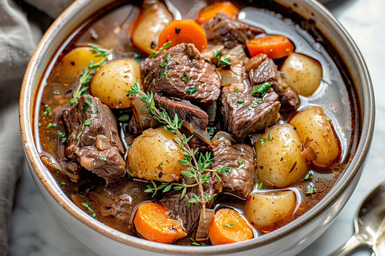Vegetarian: To make a vegetarian stew, substitute the beef with lentils or beans. Use vegetable broth instead of beef broth. Add extra vegetables like mushrooms, zucchini, or bell peppers.
