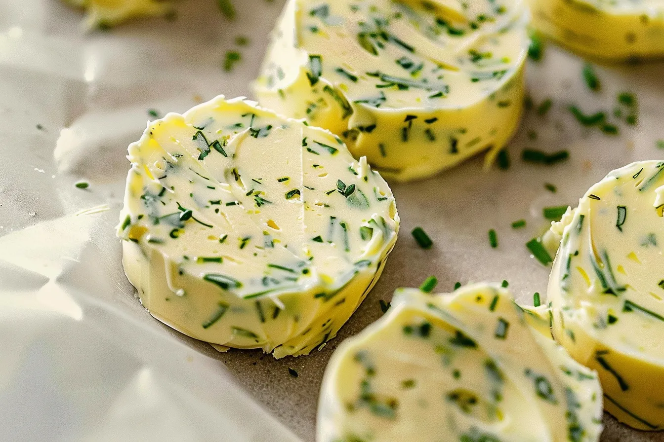 - In a bowl, combine the softened butter and finely chopped fresh herbs.