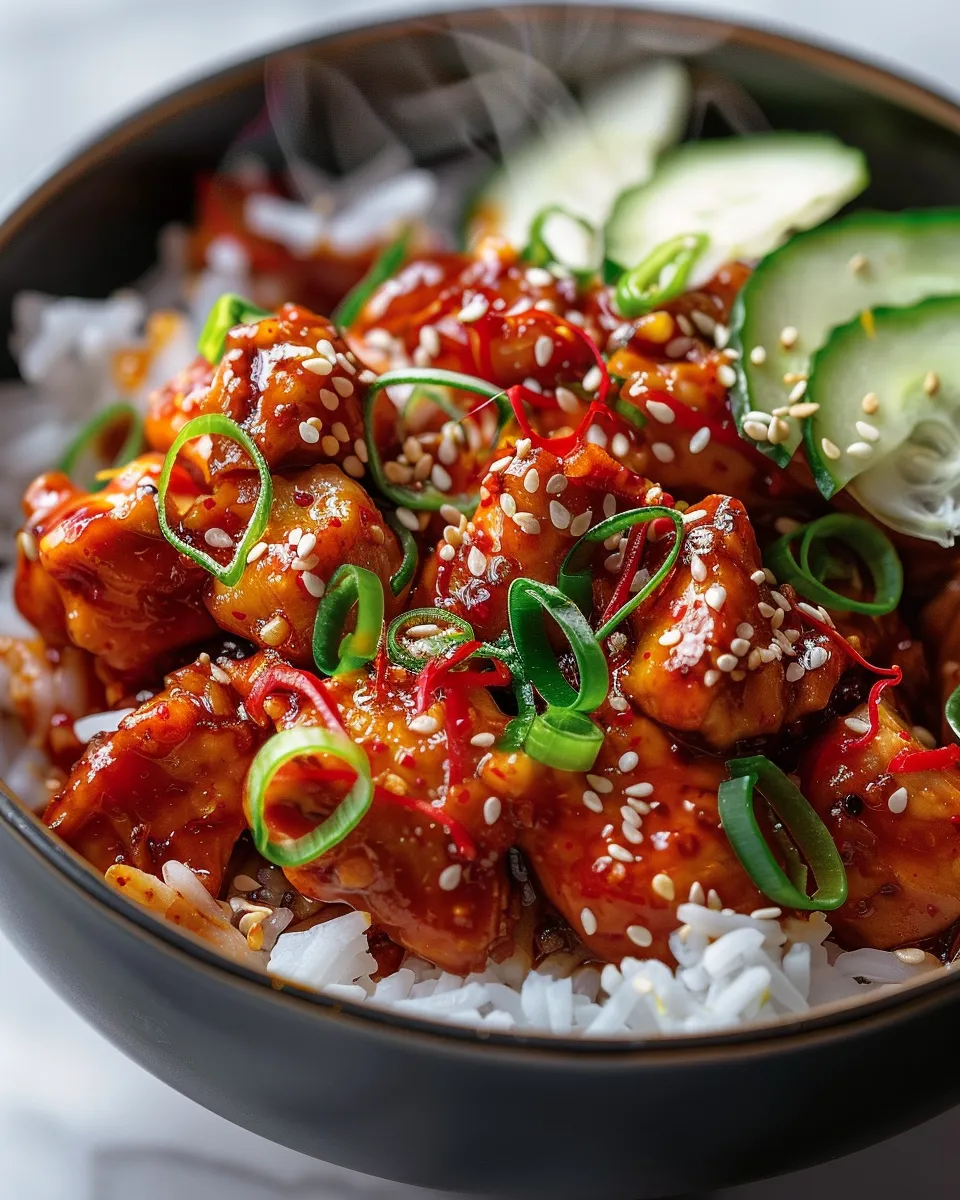 Step 4: Serve Immediately. Enjoy your flavorful and satisfying Korean Gochujang Chicken Bowl!