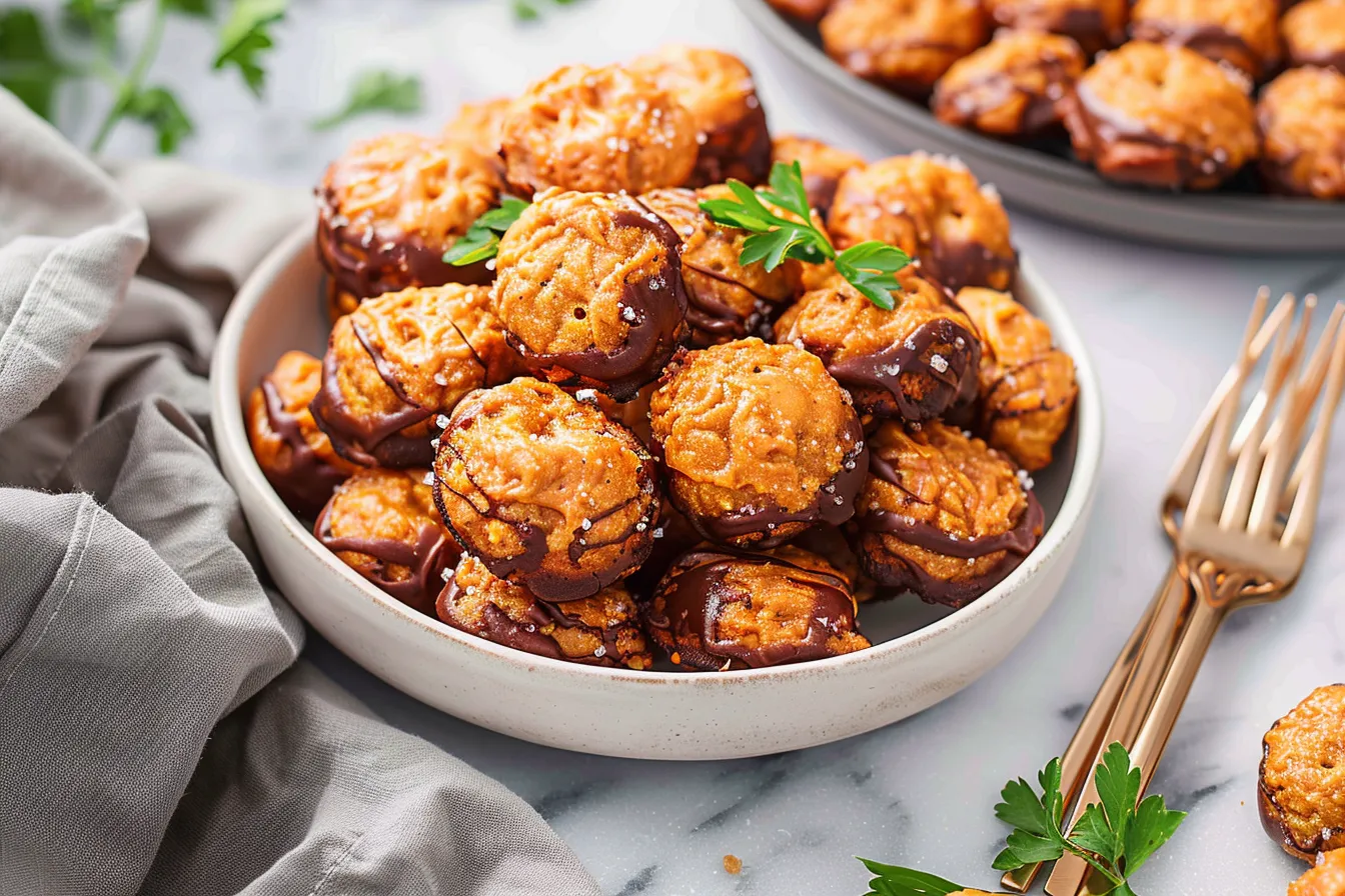 • Chill (Optional). For firmer bites, place the baking sheet in the refrigerator for about 15-20 minutes to allow the peanut butter mixture to set. This step is optional, but it makes the bites easier to handle.