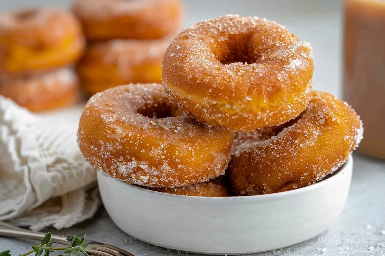 Insert a toothpick into the center of a donut. If it comes out clean or with a few moist crumbs, the donuts are done. Avoid overbaking, as this can make them dry.