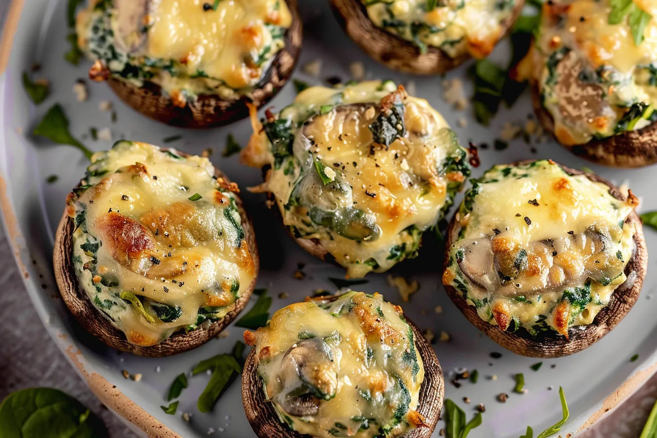 Delicious Spinach Dip Stuffed Mushrooms filled with creamy spinach dip perfect for gatherings and cozy family dinners.